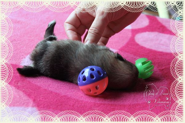 Hündin creme-sable wohnt in der Zucht